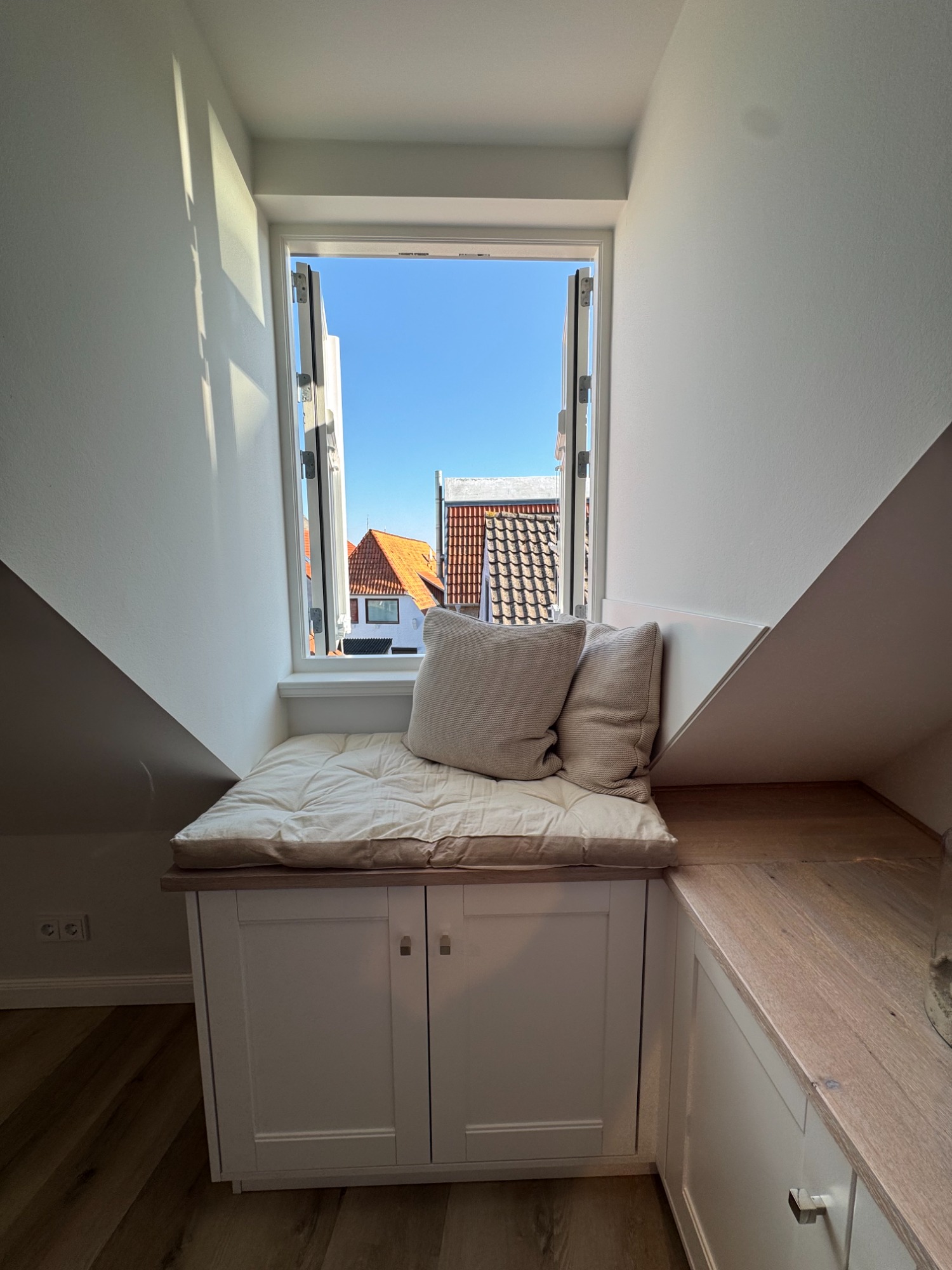 Da die Sprottenkiste erst zu Beginn diesen Jahres fertig geworden ist, haben wir leider noch keine professionellen Fotos. Diese werden wir im Laufe des Jahres erstellen - mit allen Details, unserem schönen Geschirr, der eingerichteten Dachterrasse, dem bestuhlen Innenhof, einer virtuellen Roomtour, etc. Für einen ersten Eindruck müssen nun zunächst diese Bilder genügen: